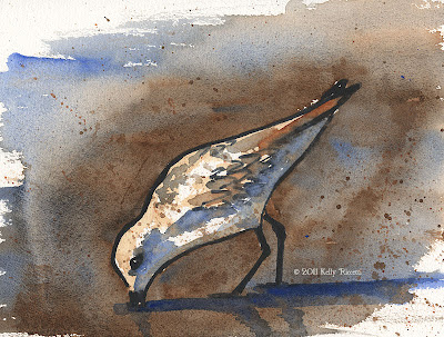 Sanderlings are one of my favorite shore birds. I decided to do series of practice paintings from a drawing I made at the beach back in March of this year. I concentrated on the two poses I had captured in the drawing...with lots of variations!